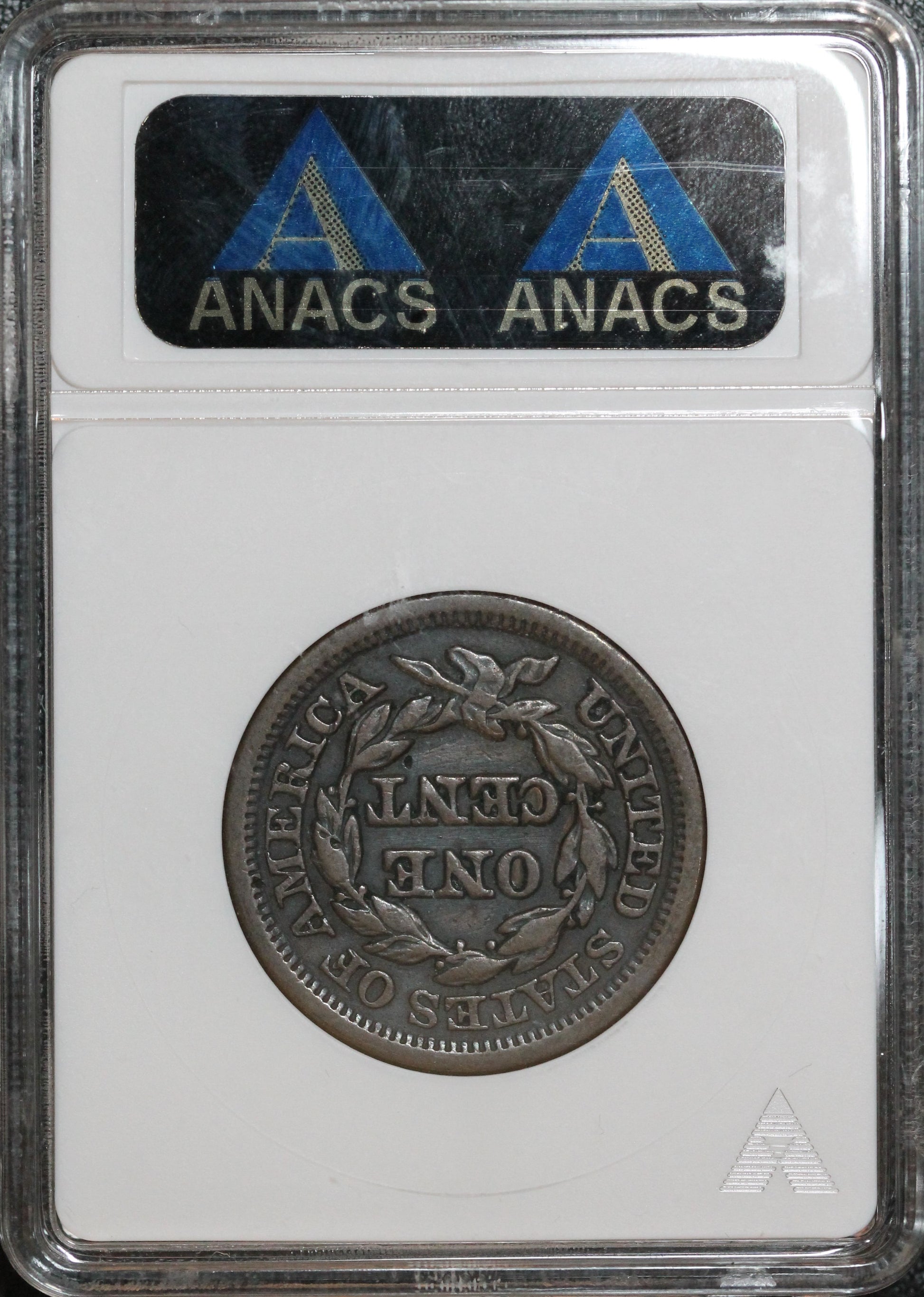 1847 Large Cent, ANACS VF 30 Details, Scratched-Tooled