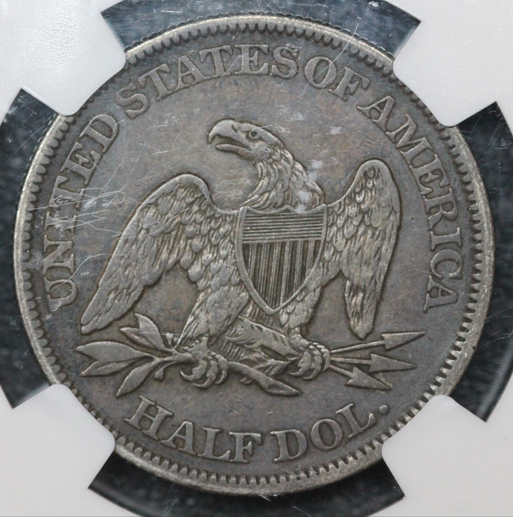 1861 Liberty Seated Half, NGC XF Details, OBV Graffiti