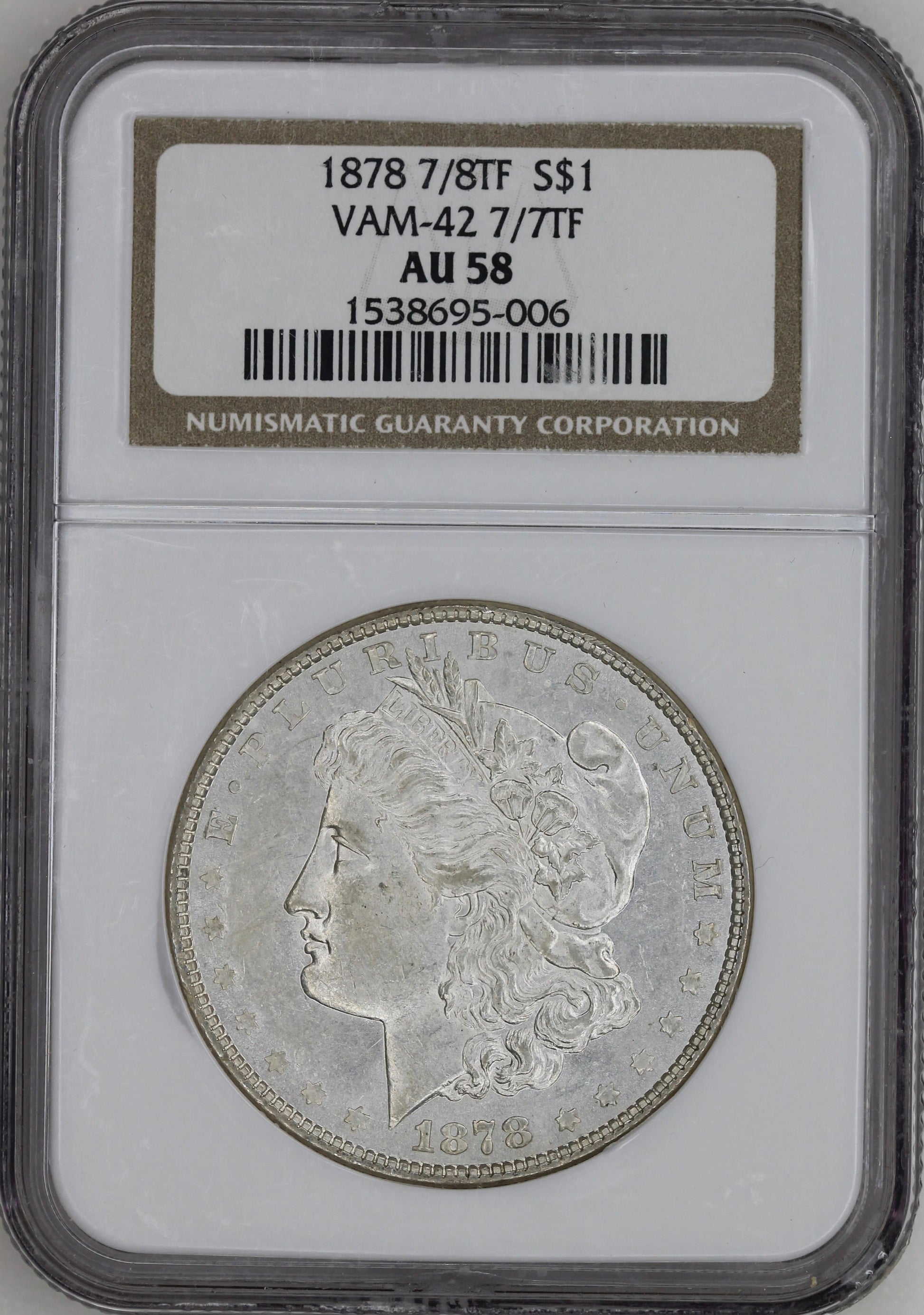 1878 7/8 TF Morgan Dollar VAM-42 7/7TF AU 58 NGC