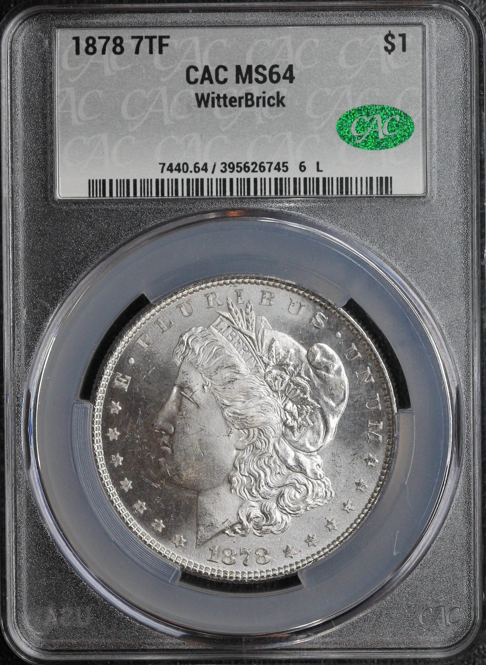 1878 7TF Morgan Dollar CAC MS64 Witterbrick, VAM 171