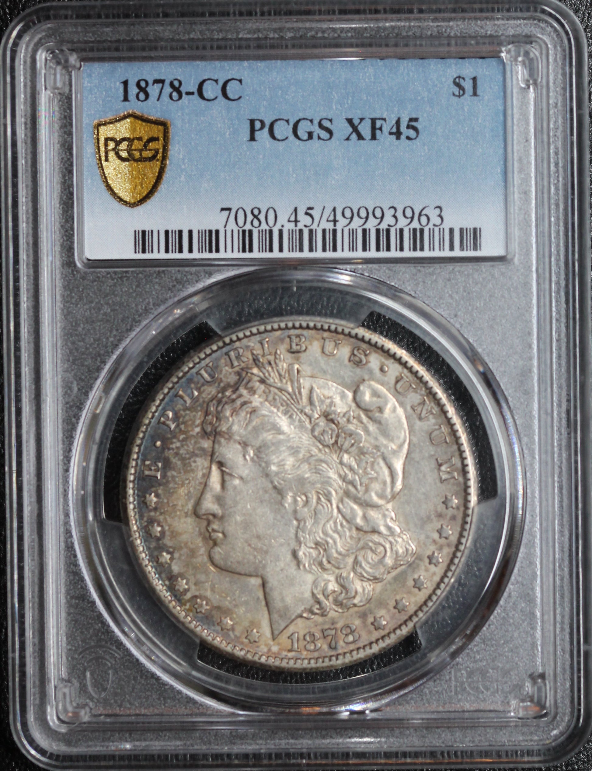 The 1878-CC Morgan Dollar represents a significant piece of American numismatic history, minted at the Carson City facility during the height of the silver dollar era. This particular coin has been graded XF45 by PCGS, indicating excellent preservation with light wear consistent with careful circulation. For serious collectors and investors, an 1878-CC in this condition offers both historical significance and strong numismatic value, representing a quality example of this desirable vintage.
