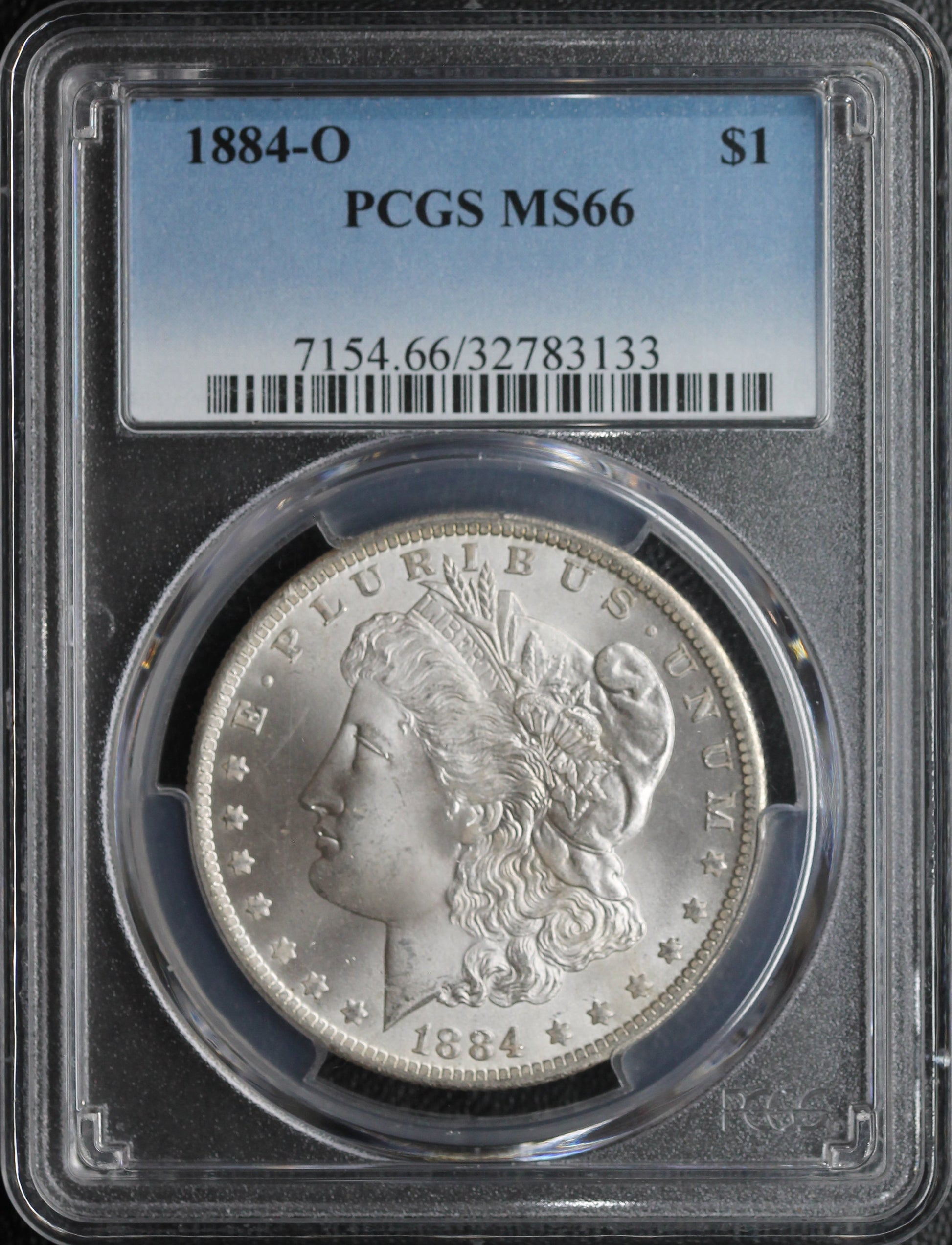 The 1884-O Morgan Dollar represents a significant piece of American numismatic history. This particular coin has been certified by PCGS at MS66, indicating exceptional preservation with minimal surface marks and lustrous original mint brilliance. This coin appeals to serious collectors pursuing complete Morgan Dollar sets and those seeking investment-grade U.S. silver coinage with strong historical provenance and certified authenticity.