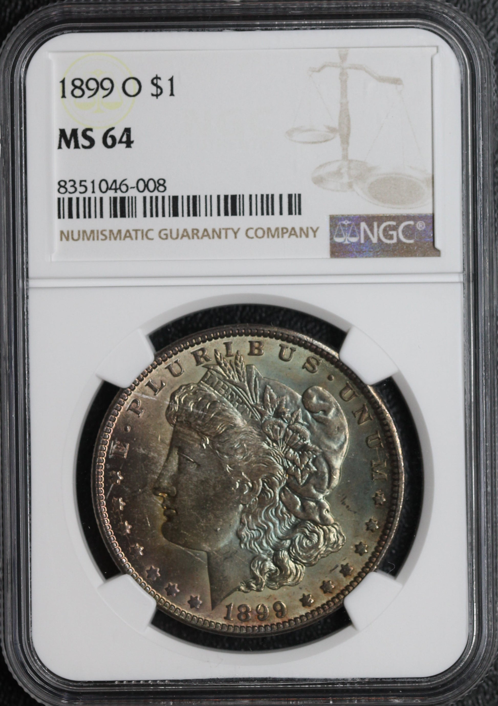 This 1899-O Morgan Dollar has been graded and certified by NGC as MS64, ensuring its quality and authenticity. Enhance your coin collection with this professionally graded and preserved piece, a valuable addition for any coin enthusiast.